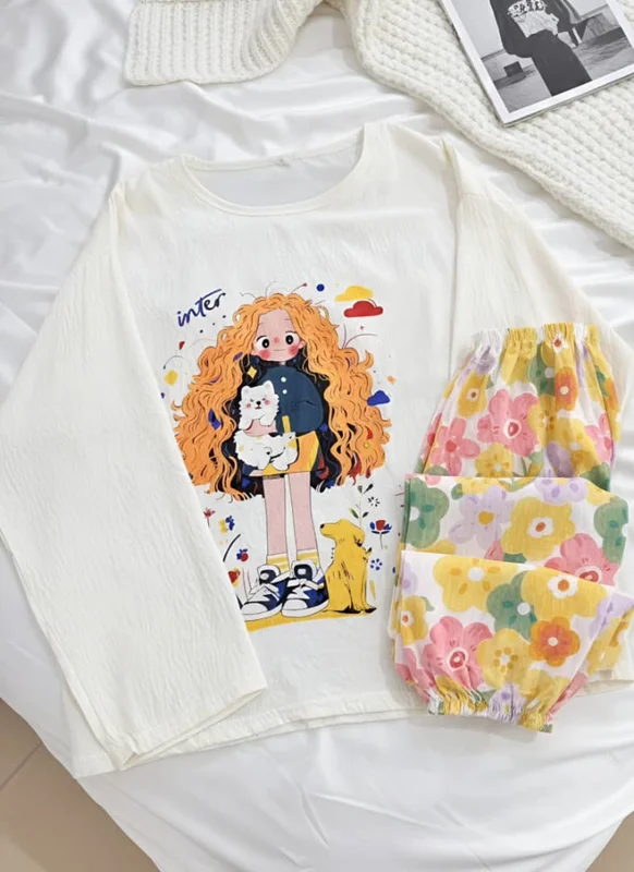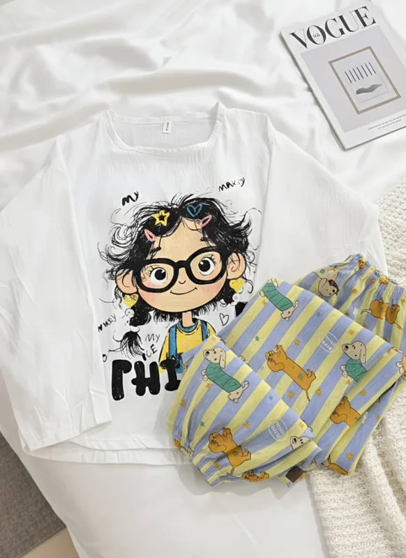 دختر با شلوار طرح سگ زرد وابی