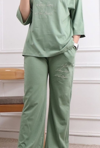ست تیشرت وشلوار نخ پنبه گلدوزی شده