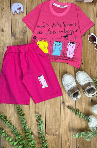 ست تیشرت وشلوارک نخ پنبه دخترانه
