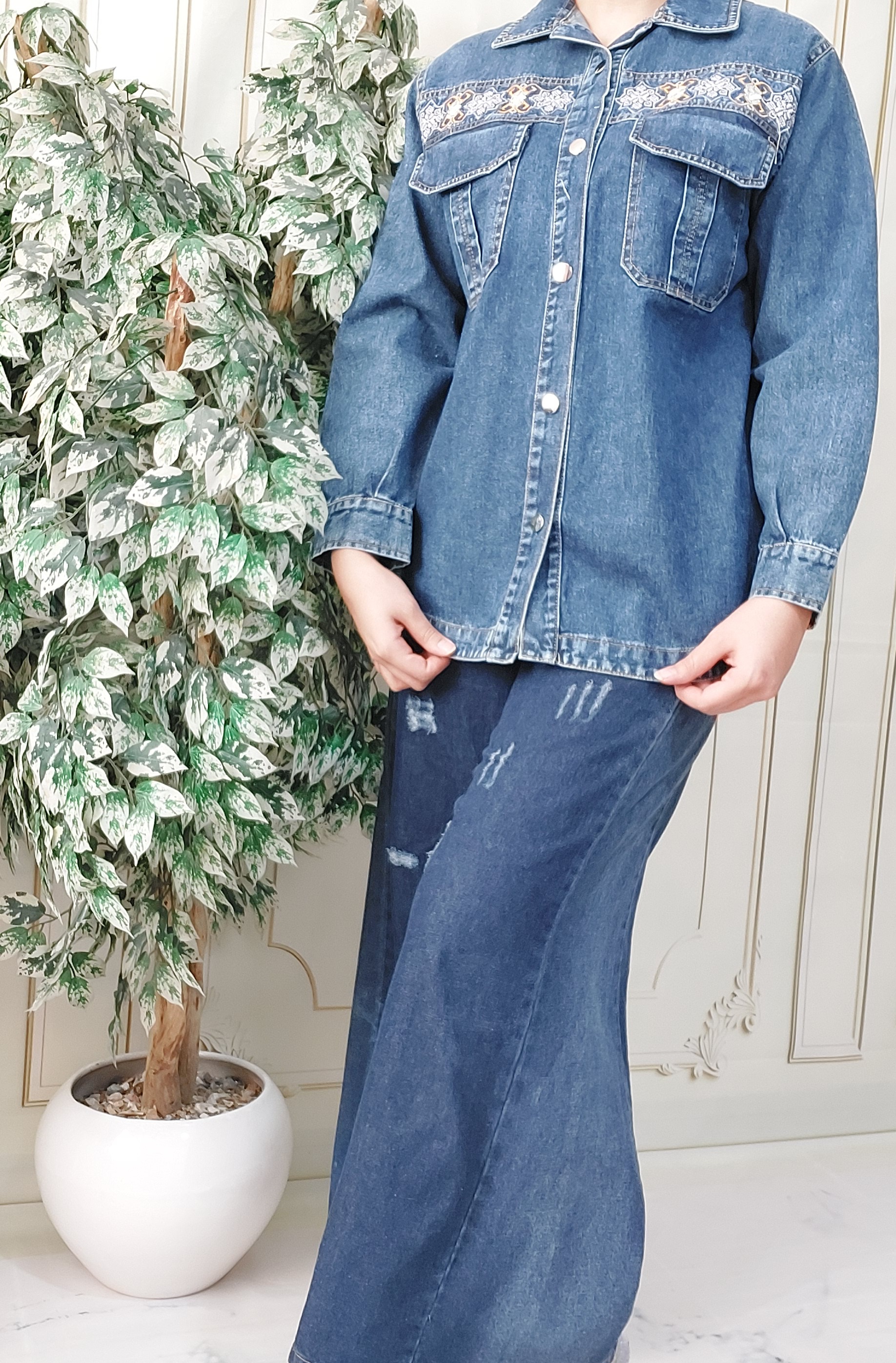 کت لی سنگشور شده گلدوزی شده فری سایز