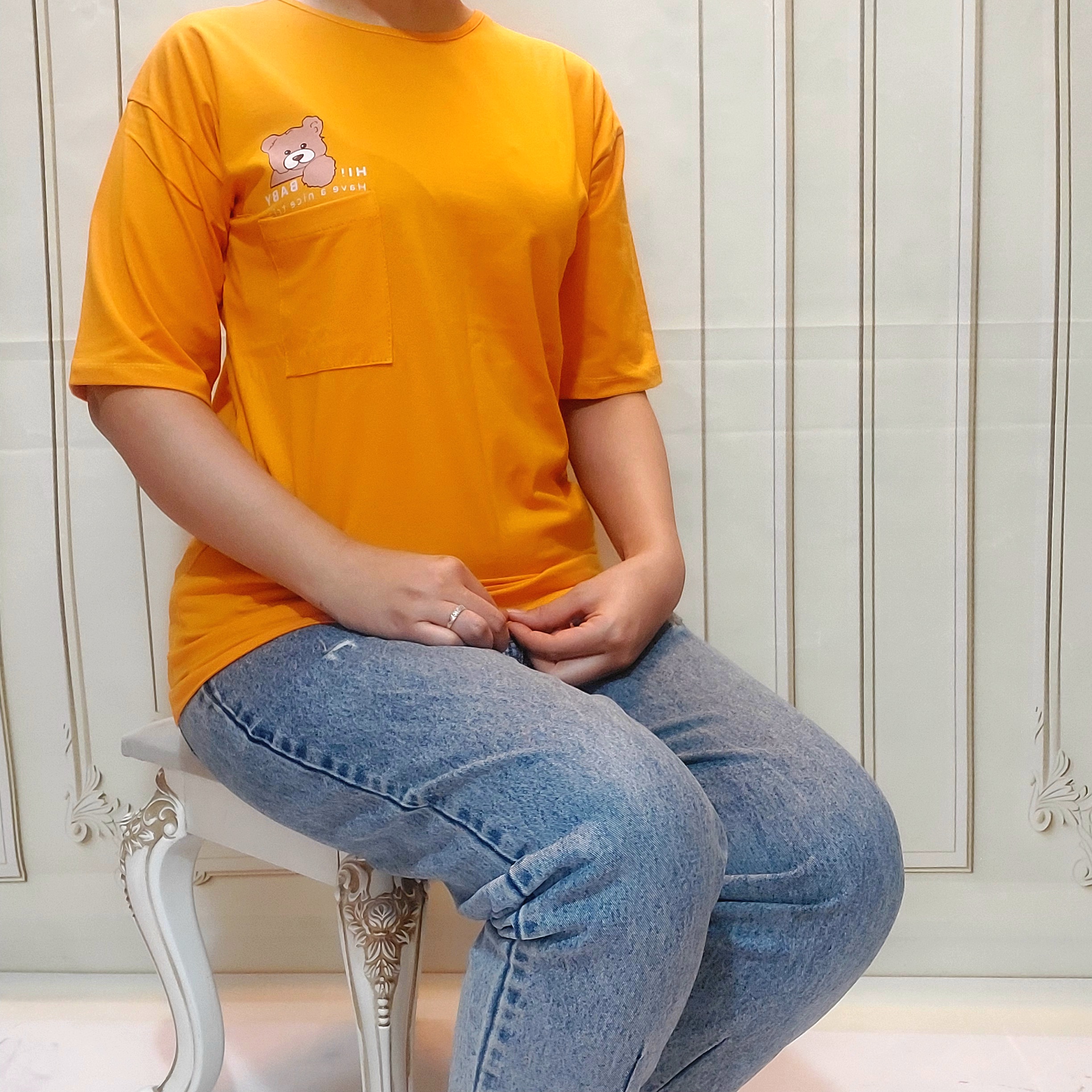 تیشرت تک جیب خرسی فانتزی سوپر پنبه فری سایز